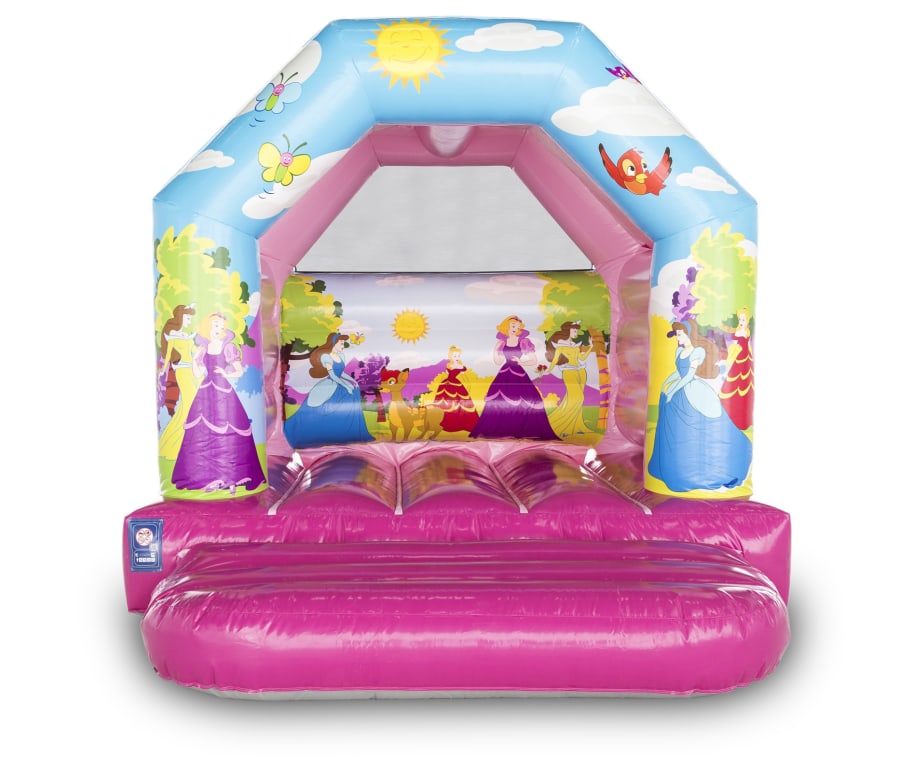 Fit for a Princess! This princess bouncy castle provides your own little princess with hours and hours of bouncing fun. It is extremely popular with the girls and brightly coloured making it ideal for all those princess parties. Size: 11ft x 12ft x 9.5ft Recommended age: Under 14 years