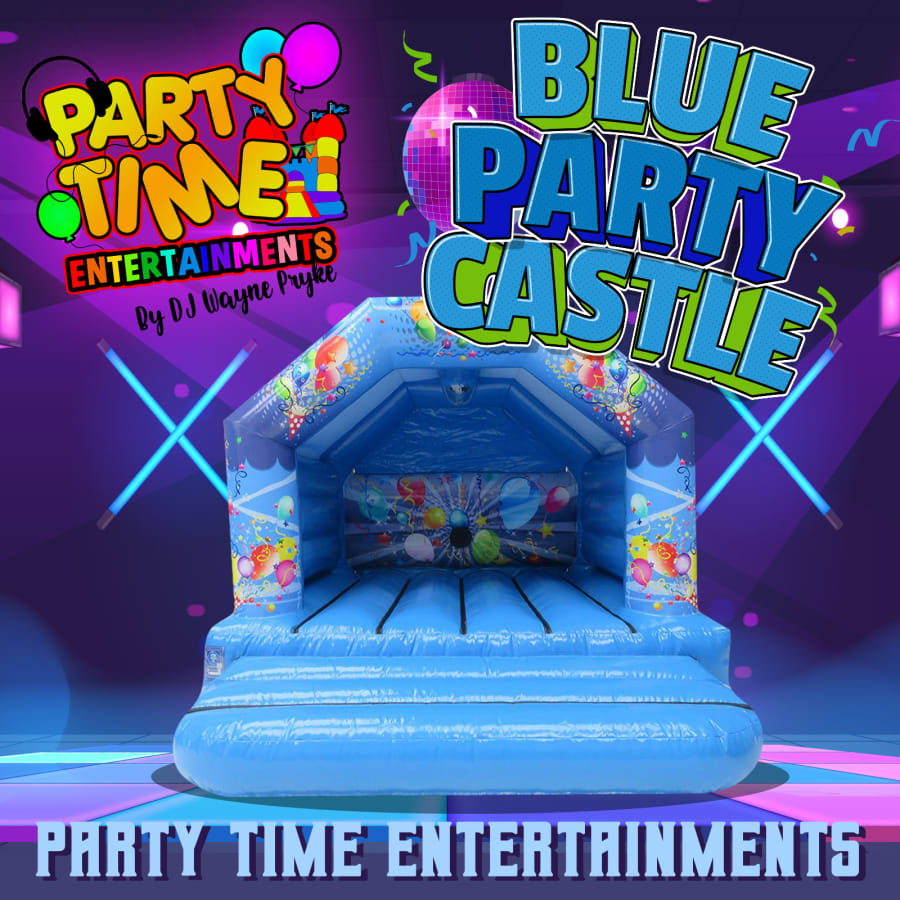 This Blue coloured Party Bouncy Castle is perfect for children's parties and occasions of any kind. The panels feature party images with Balloons and Stars. 💙