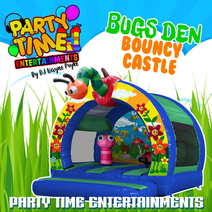Get ready for a bug-tastic adventure with our 12ft x 12ft Curved Bugs Den Bouncy Castle! This vibrant and exciting inflatable castle is perfect for children who love bugs and all things creepy-crawly. 🐛