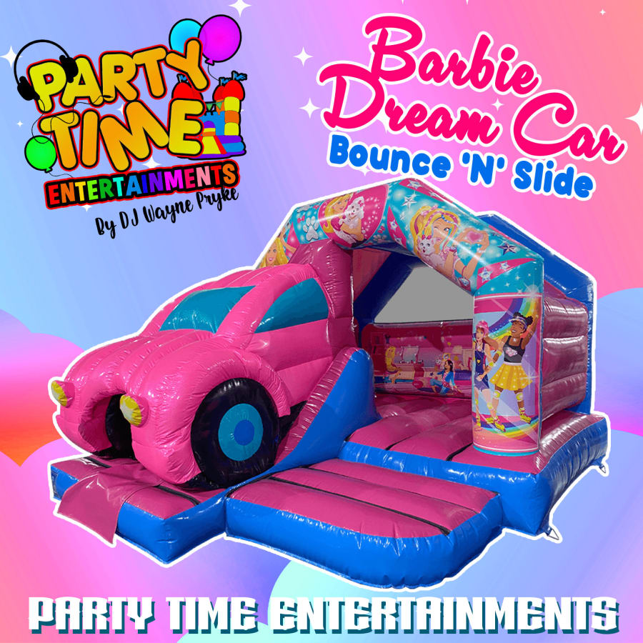 💟 Introducing our Brand New 3D Dream Car Bounce N Slide! 💟 Looking to add a touch of magic and excitement to your next event? Let your child's imagination soar as they embark on exciting adventures with Barbie! 💄