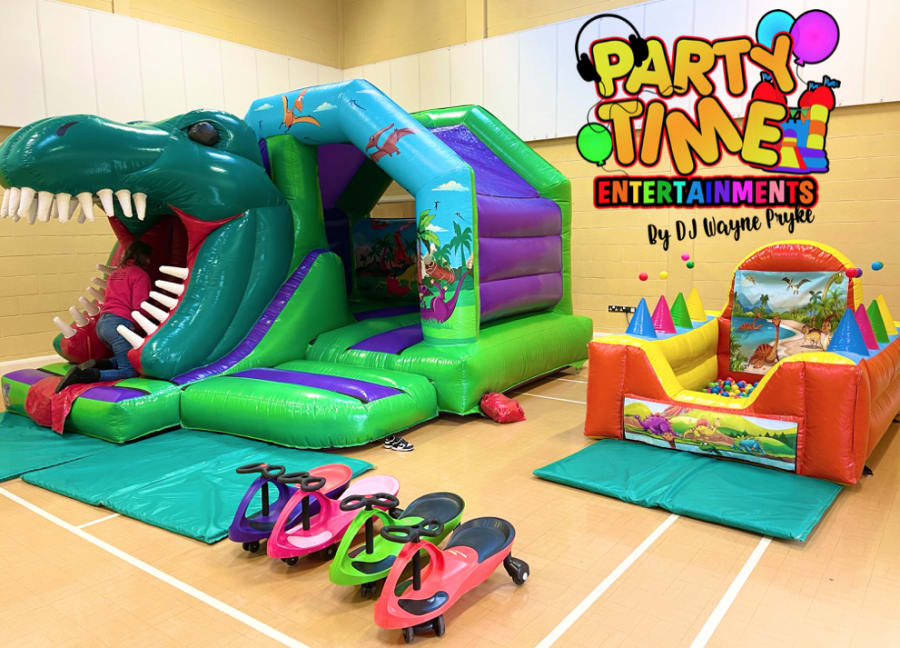 The Dinosaur Inflatable Package includes; ★★★★★★★★★★★★★★★★★★★★★★★★★★ - 13ft x 15ft Dinosaur Bounce N Slide - Dinosaur Inflatable Ball Pit - Ride Ons Only £175! ★★★★★★★★★★★★★★★★★★★★★★★★★★